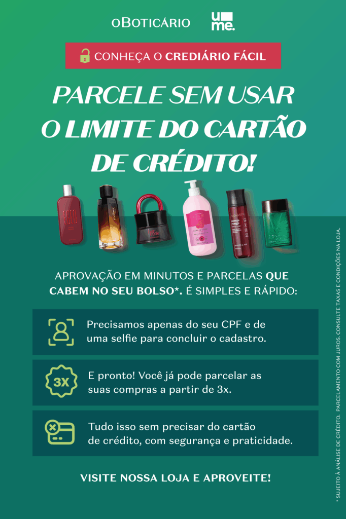 *O Crediário Fácil está em fase de piloto, disponível apenas em algumas lojas O Boticário.