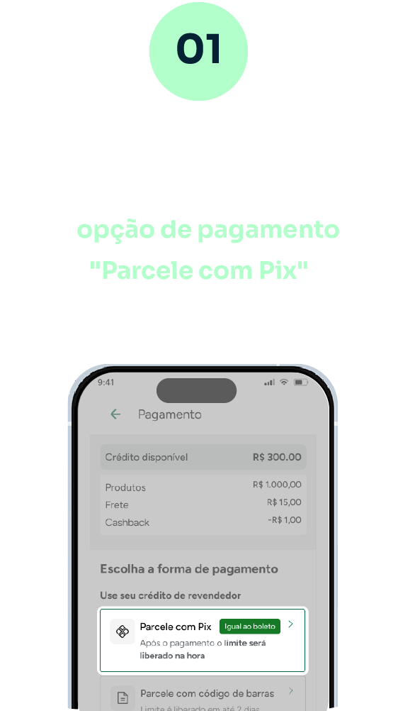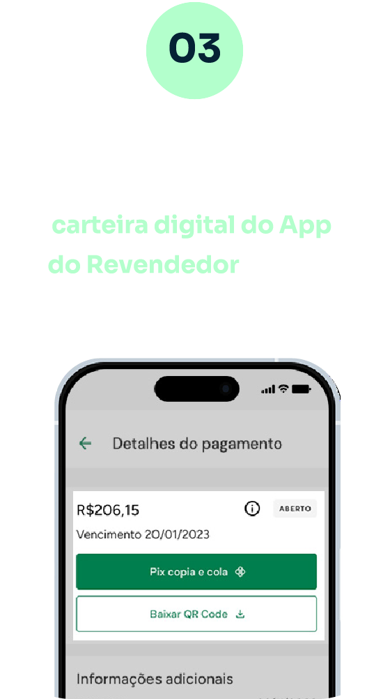 É uma forma de pagamento do Mooz Boleto que permite o pagamento de títulos por QR Code ou Pix Copia e Cola no lugar do código de barras. Oferece as mesmas condições de pagamento do boleto tradicional, desde que o revendedor tenha limite de crédito disponível.